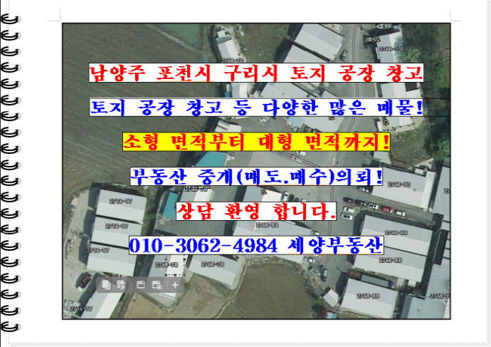 본건 남양주 공장 근생 물류 창고 부지 용지 토지 780평 매매물건에 대하여 문의하실 내용이나 궁금한 사항 있으시면 세양부동산 031-554-4984로 문의 하세요.