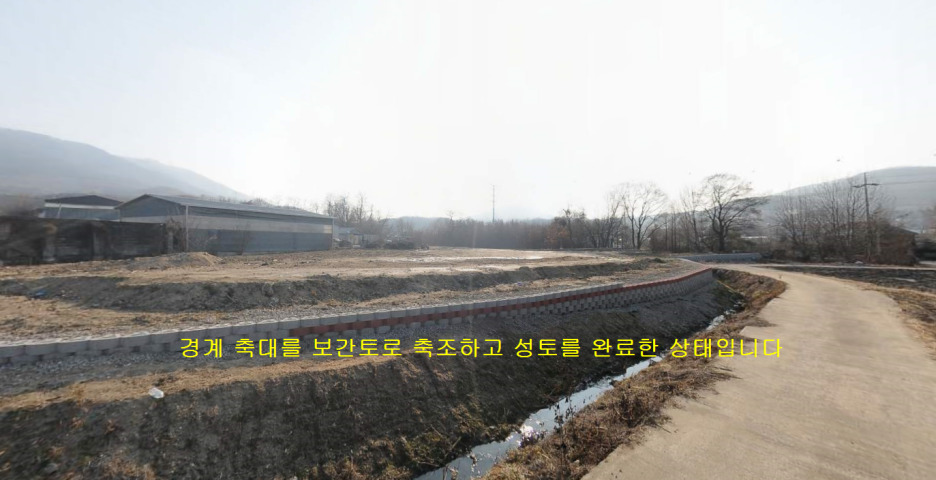 포천시 공장 매매 물건은 위의 사진에서 보시는 봐와 같이 경계 축대를 보강토를 축조하여 성토하고 토목을 완료한 상태입니다.