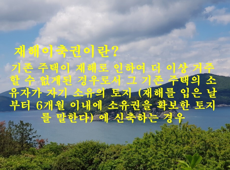 ② 기존 주택이 재해로 인하여 더 이상 거주할 수 없게 된 경우로서 그 기존 주택의 소유자가 자기 소유의 토지 (재해를 입은 날부터 6개월 이내에 소유권을 확보한 토지를 말한다)에 신축하는 경우 (재해 이축권)