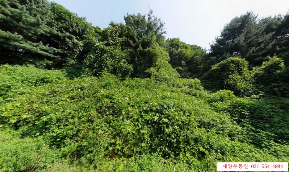잣나무 등이 식재되고 잡목이 무성하지 면 경사도는 낮은 임야입니다.